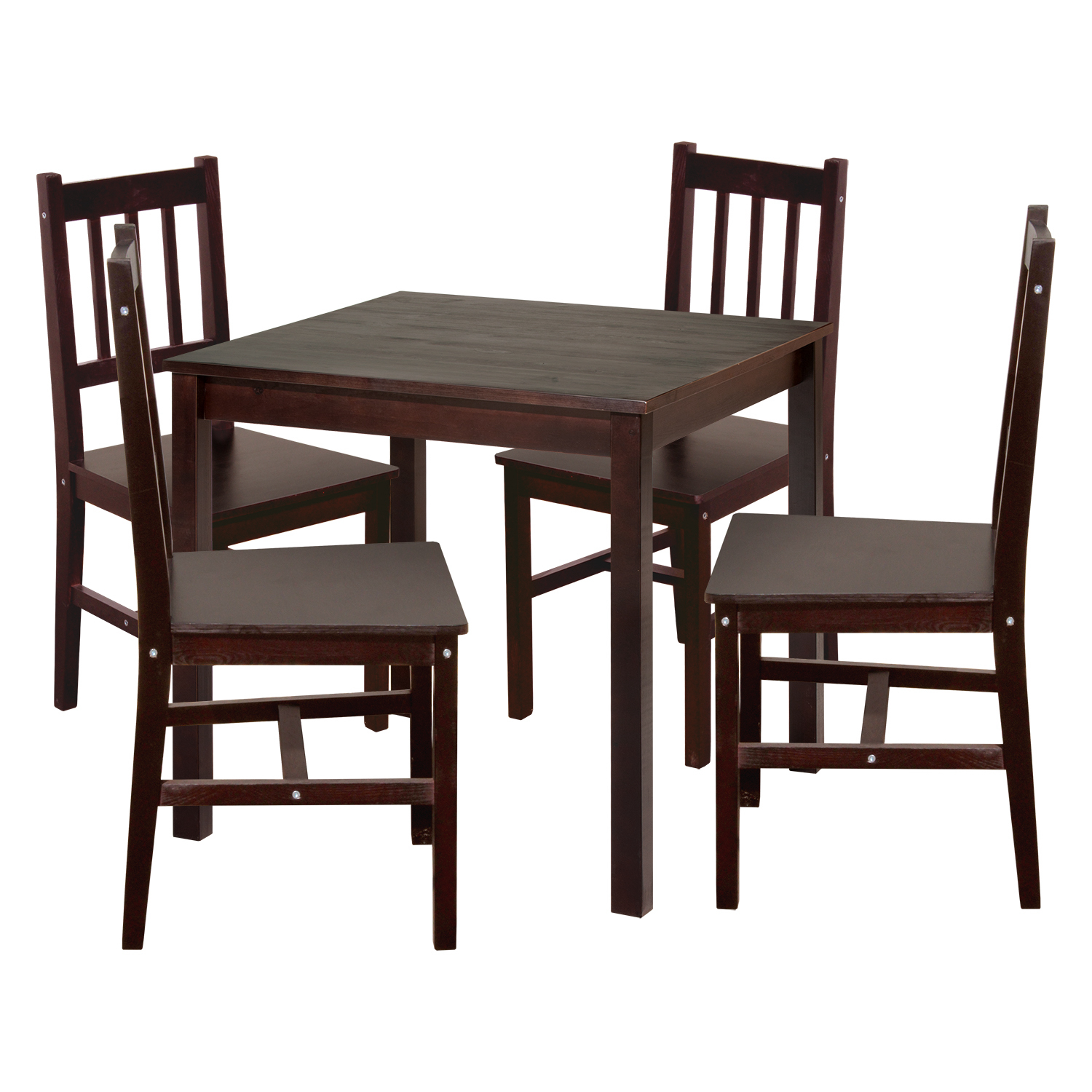 jídelní stůl 8842H a 4 jídelní židle 869H materiál masiv borovice, barevné provedení hnědý lak výška sedu židle 45 cm rozměr stolu (š/h/v): 75 × 75 × 73 cm rozměr židle (š/h/v): 41 × 42 × 91 cm