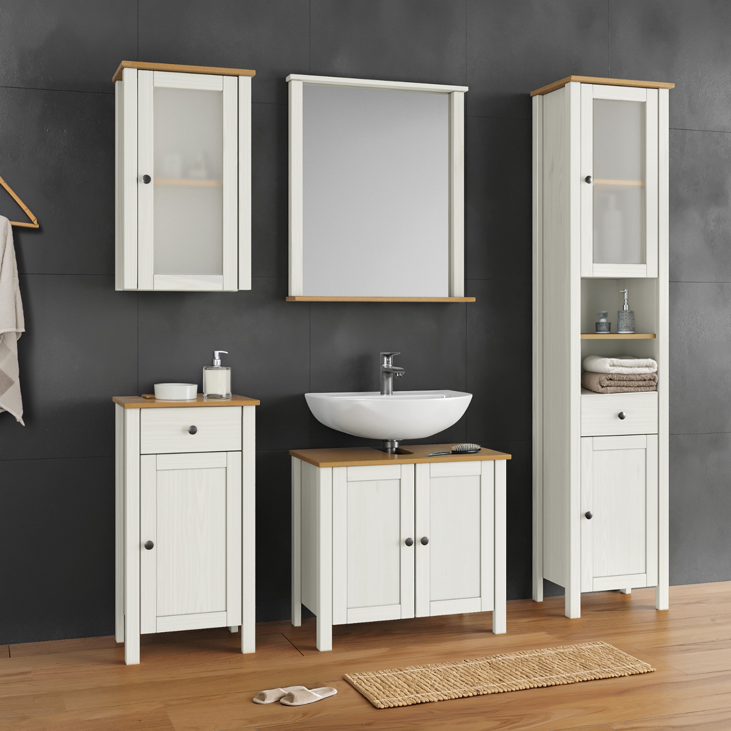 Koupelnová sestava PORTO bílá/buk