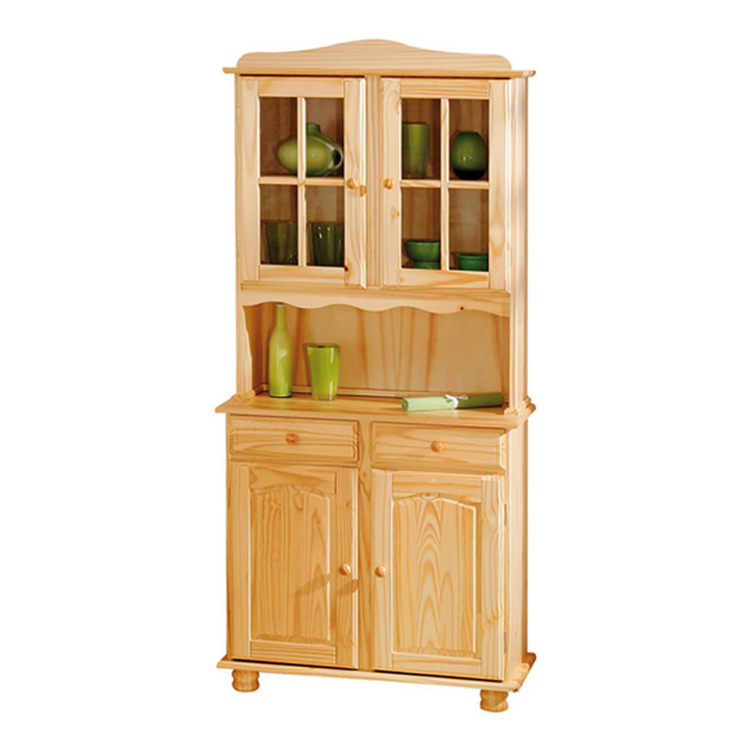 v horní části 2 prosklená dvířka ve spodní části 2 plná dvířka, 2 zásuvky s kovovými pojezdy
