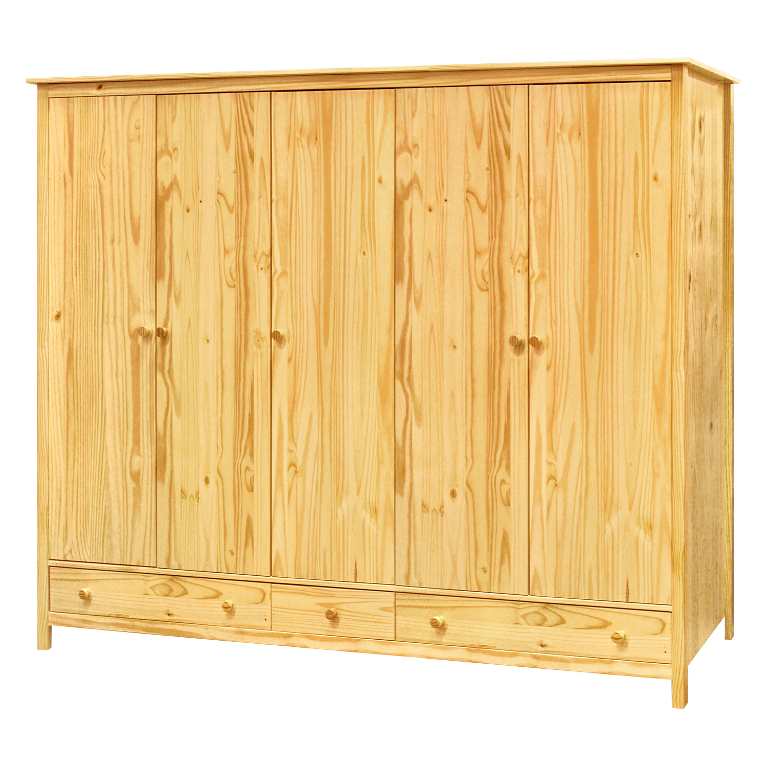 Pokud jste vícečlenná rodina, nebo jen milujete módu a máte hodně oblečení, tak skříň 5dveřová TORINO by vás mohla uspokojit. Je z masivní borovice a je v lakovaném provedení. Prostor ve skříni je dělaný v poměru 2:1:2. V levé a pravé širší části se nachází prostorná šatní tyč a police na sezónní oblečení, či klobouky nebo čepice. Na šatní tyč pak můžete pověsit šaty, kabáty, bundy nebo košile. Ve střední úzké části se nachází 3 police na uložení triček a svetrů. Ve spodní části se nachází 3 zásuvky s kovovými pojezdy, tam zase můžete uložit vaše spodní prádlo. Jelikož je skříň opravdu velmi prostorná, určitě v ní najdete místo i na ložní prádlo. Skvěle bude vypadat nejen na chatě či chalupě, ale i v moderně vybaveném domě.