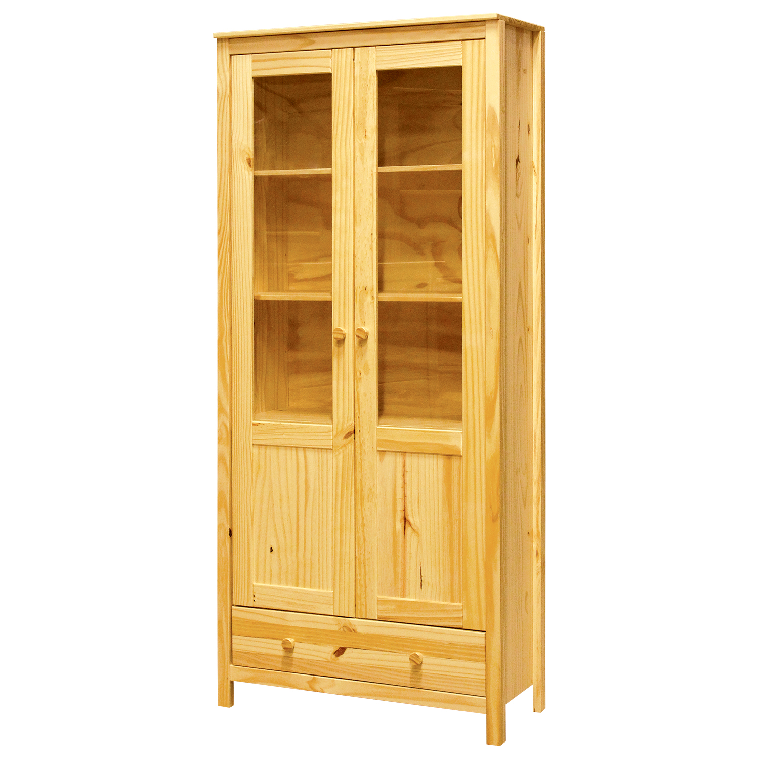 Vitrína TORINO v provedení masiv borovice - Prostorná vitrína.